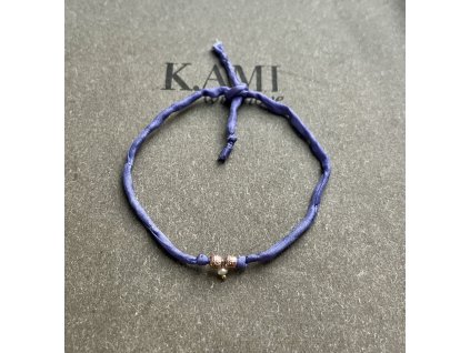 Náramek z ručně barvené hedvábné šňůrky s tepanými korálky zlacenými růžovým zlatem (Ag925) s perličkou, úvaz na uzlík.