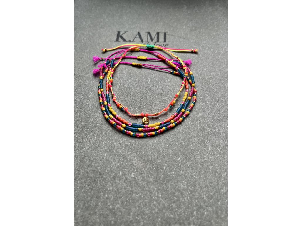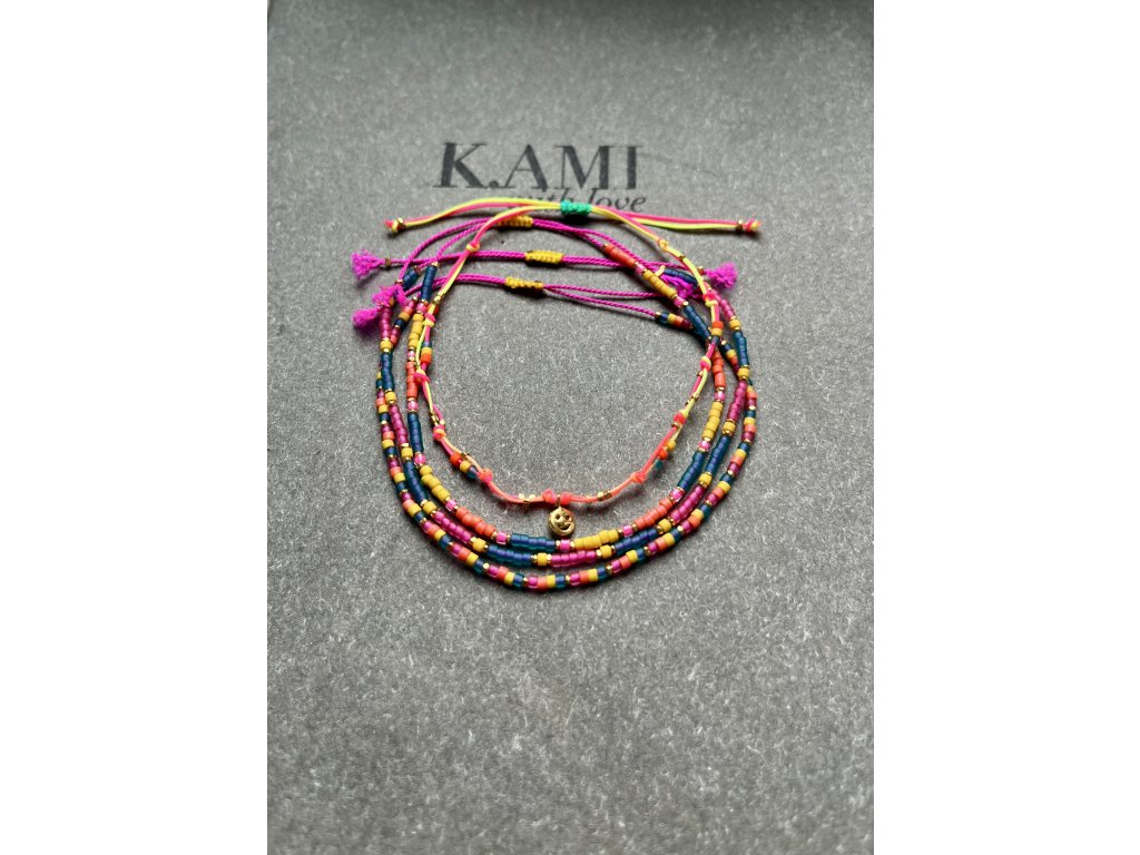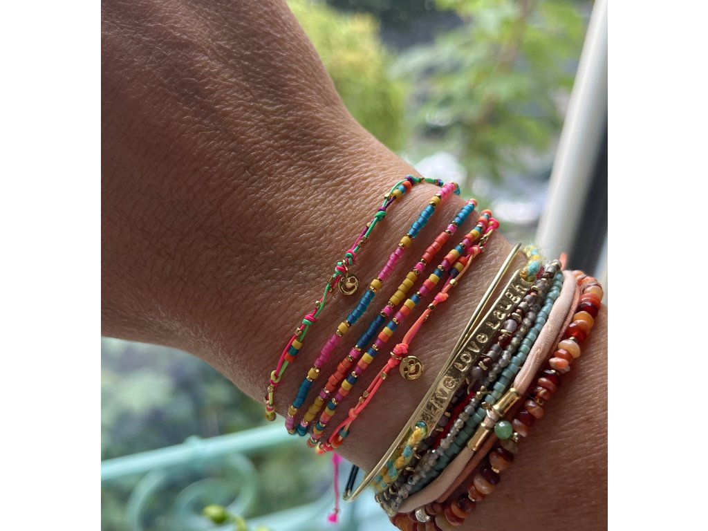 Boho letní náramek z japonských rokajlů se zlacenými fazetami (Ag925), posuvný úvaz.