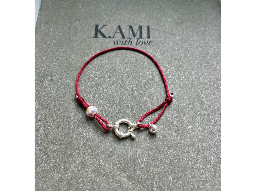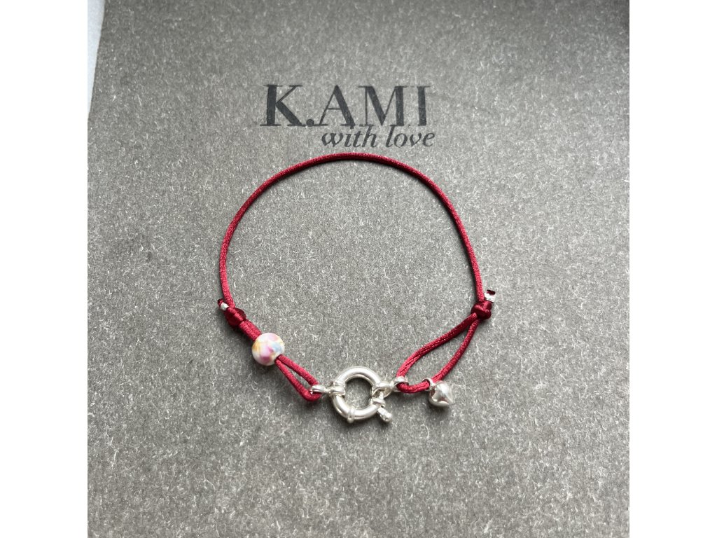 Fancy náramek se zdobným stříbrným zapínáním (Ag925), korálkem Paris s kytičkami a stříbrným srdíčkem (Ag925) na saténové šňůrce.