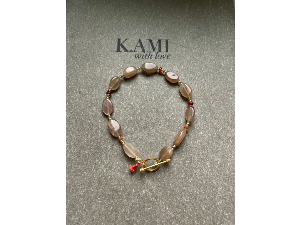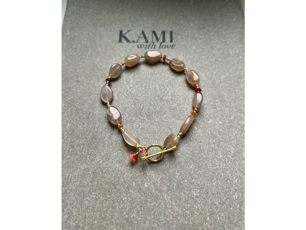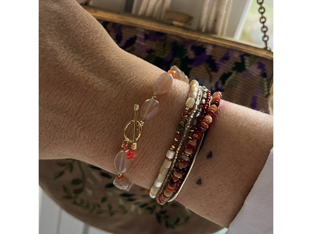 Nádherný náramek z kombinace měsíčního kamene a mexického opálu se zlacenými fazetami a zdobným zlaceným zapínáním (Ag925).