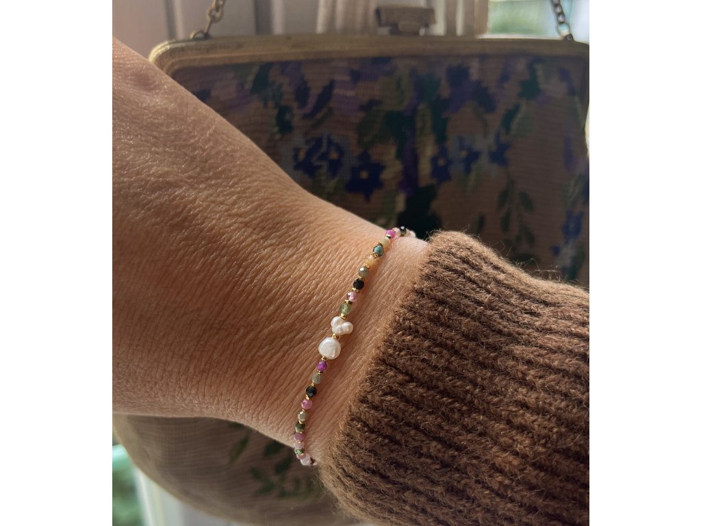 Náramek z barevných turmalínů s perličkami Ag925