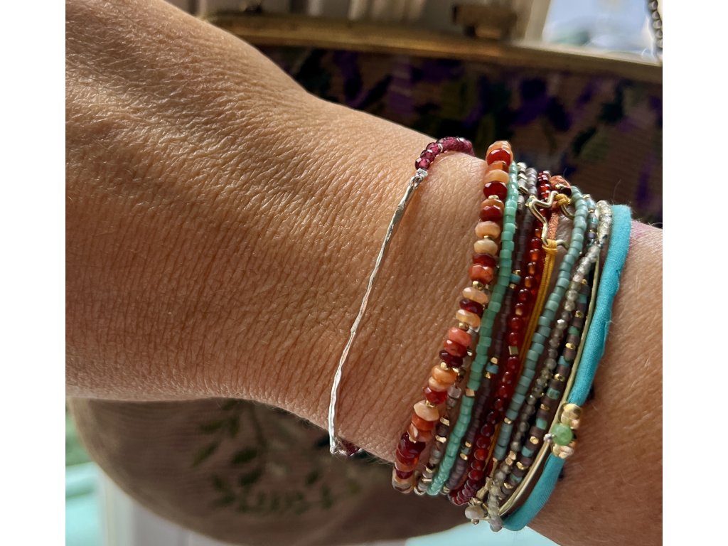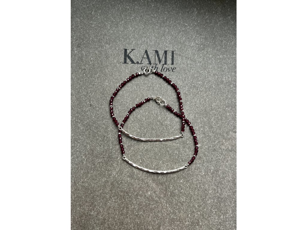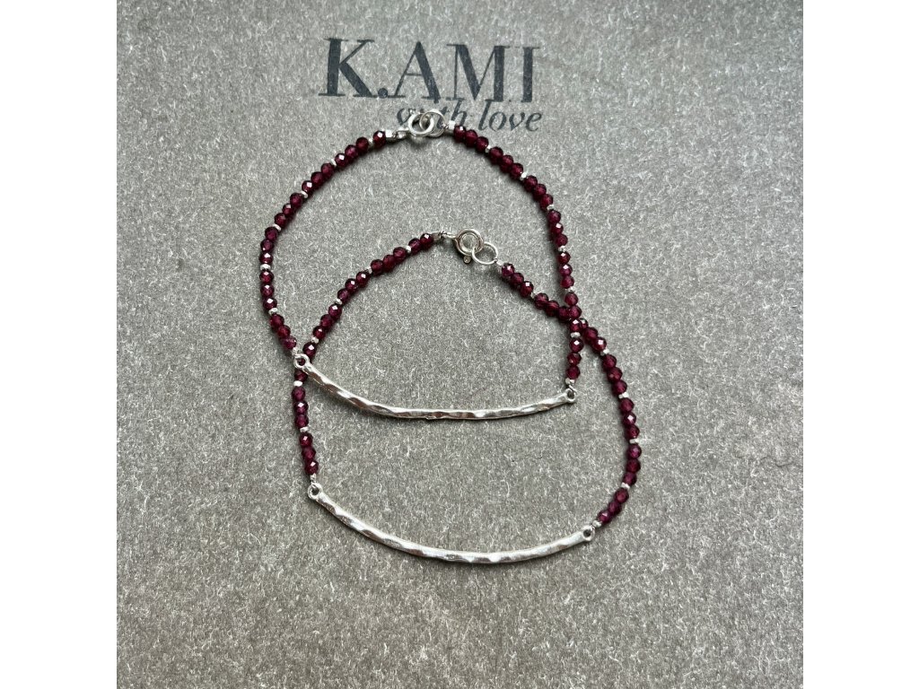 Náramek z granátu se stříbrnými fazetami a stříbrným proutkem (Ag925), stříbrné zapínání (Ag925).