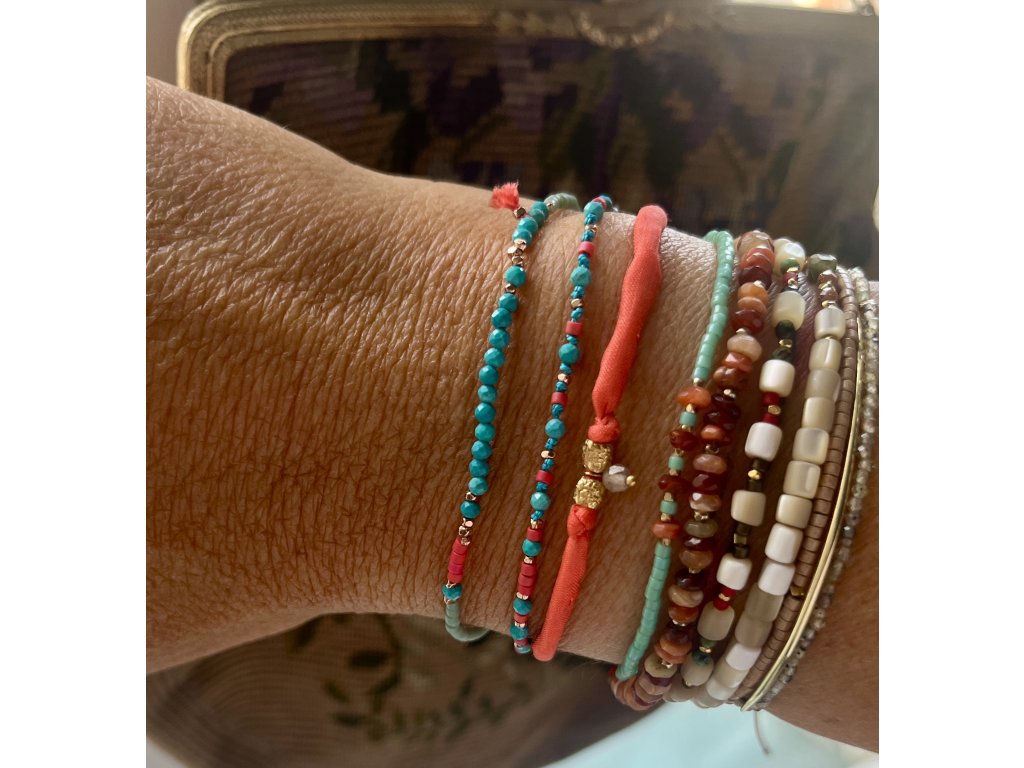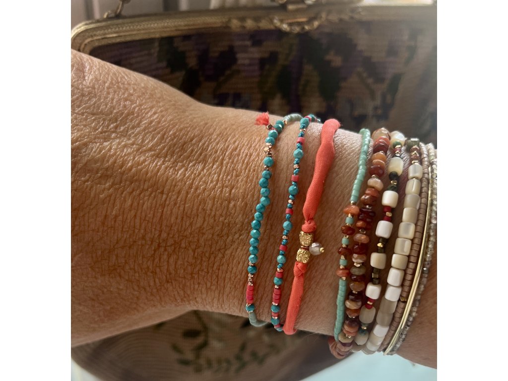 Náramek z hedvábné šňůrky s turmalínem a zlacenými korálky Ag925