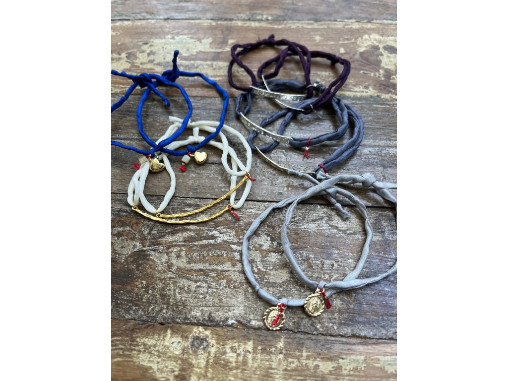 Náramek z hedvábné šňůrky se zlaceným srdíčkem Ag925