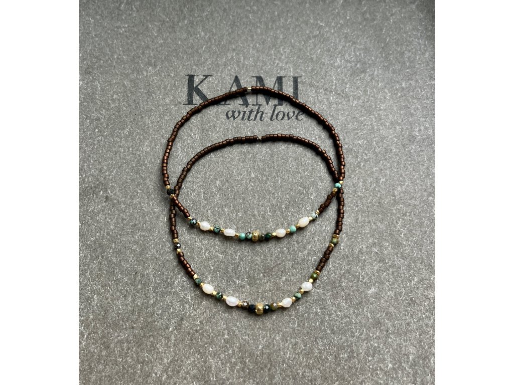 Náramek z japonských rokajlů s perličkami a tyrkysy Ag925