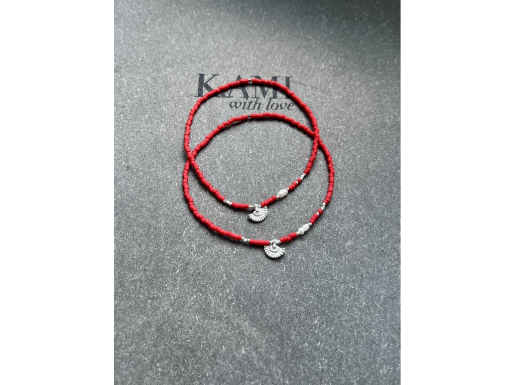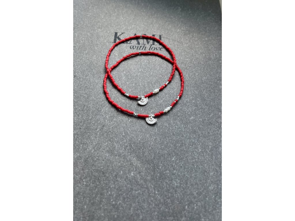 Náramek z japonských rokajlů s perličkou a stříbrným vějířkem Ag925