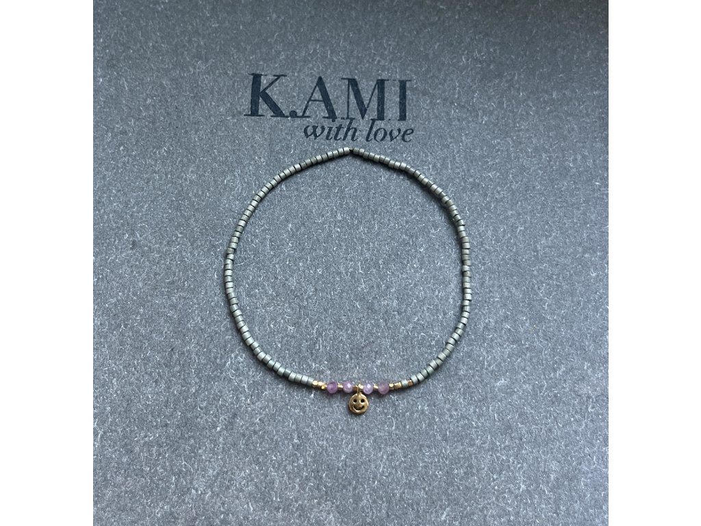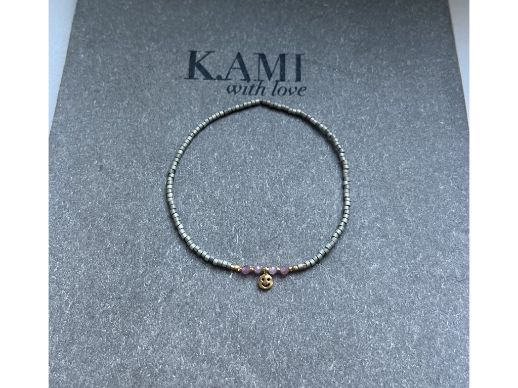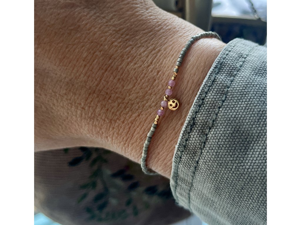 Náramek z japonských rokajlů s turmalíny a smajlíkem Ag925