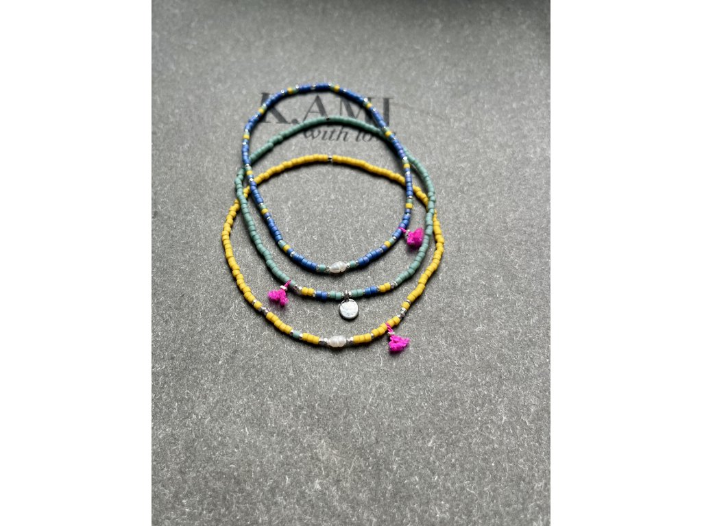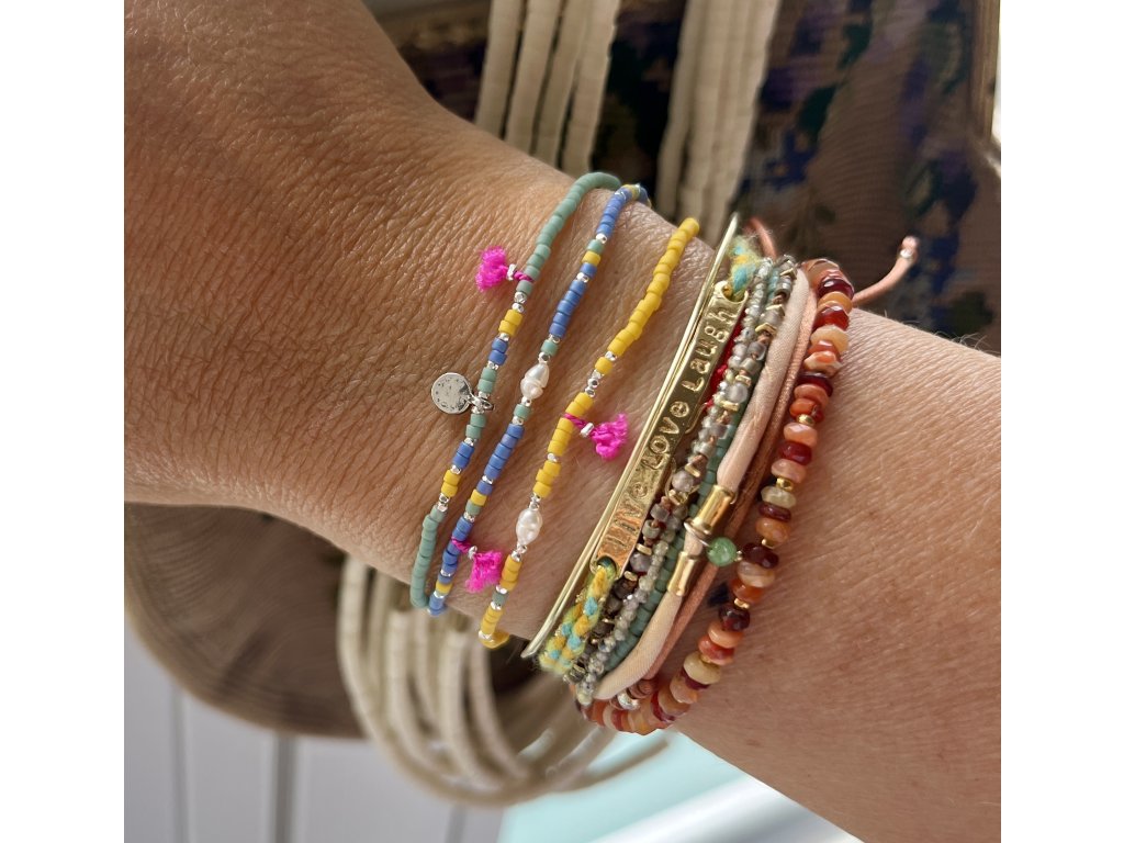 Náramek z japonských rokajlů se stříbrnou placičkou Ag925