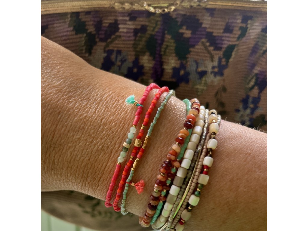 Náramek z japonských rokajlů se zlacenými korálky Ag925