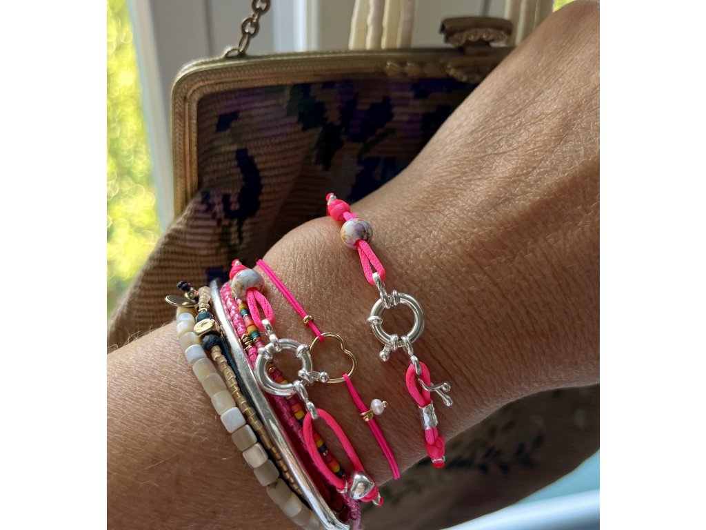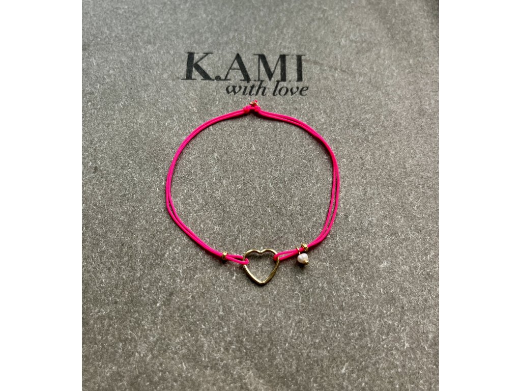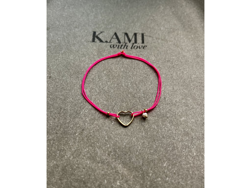 Náramek ze shambala šňůrky se zlaceným srdíčkem a perličkou Ag925