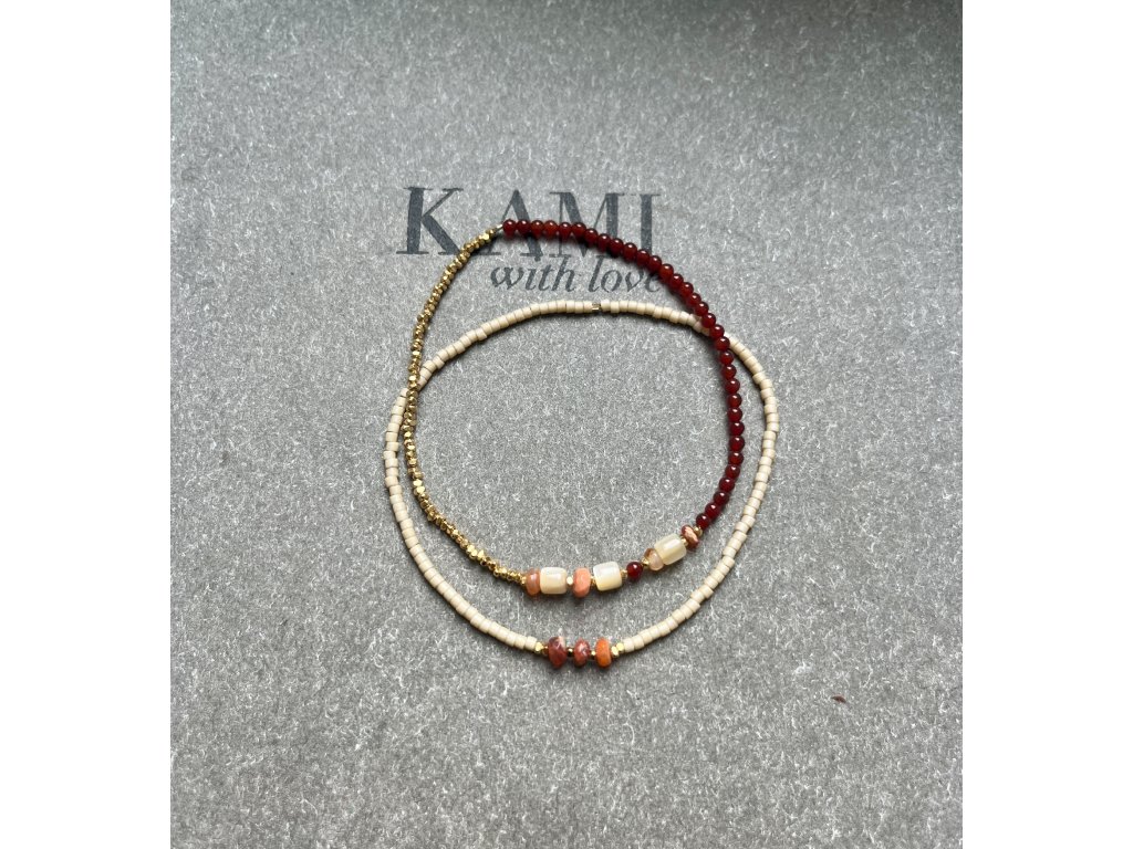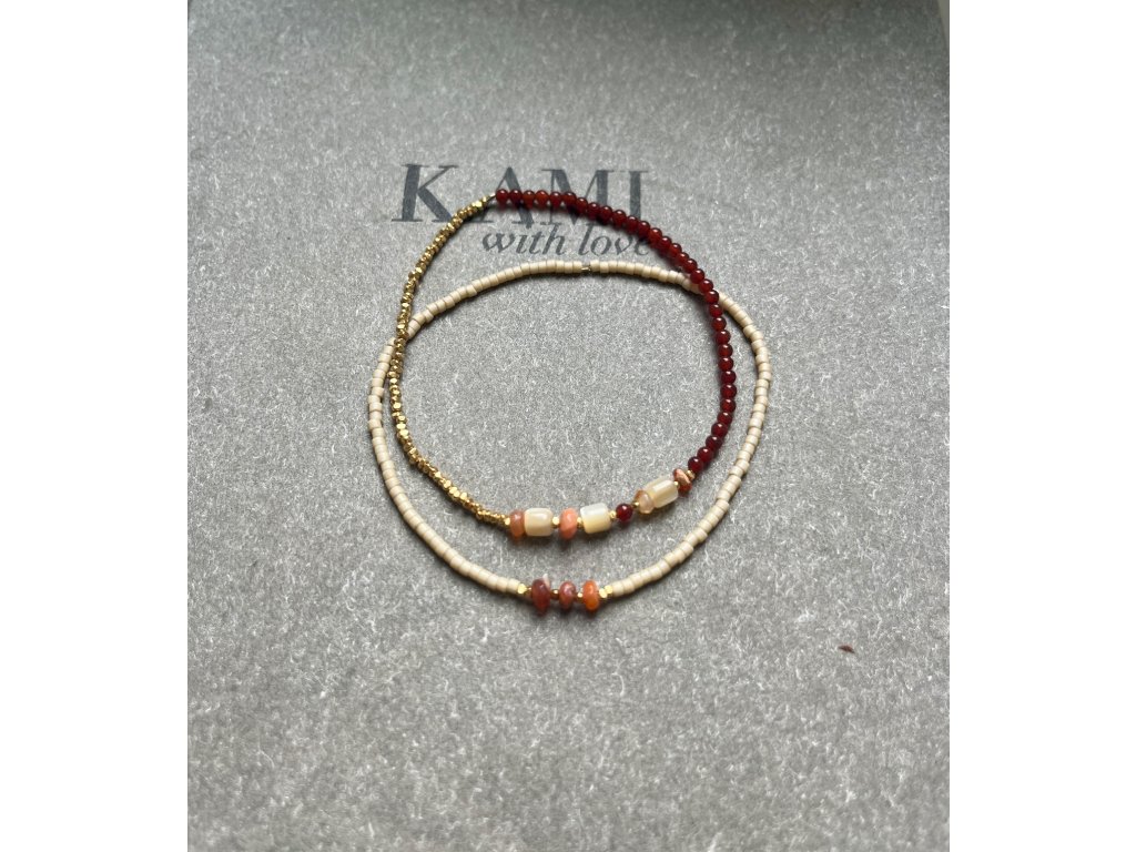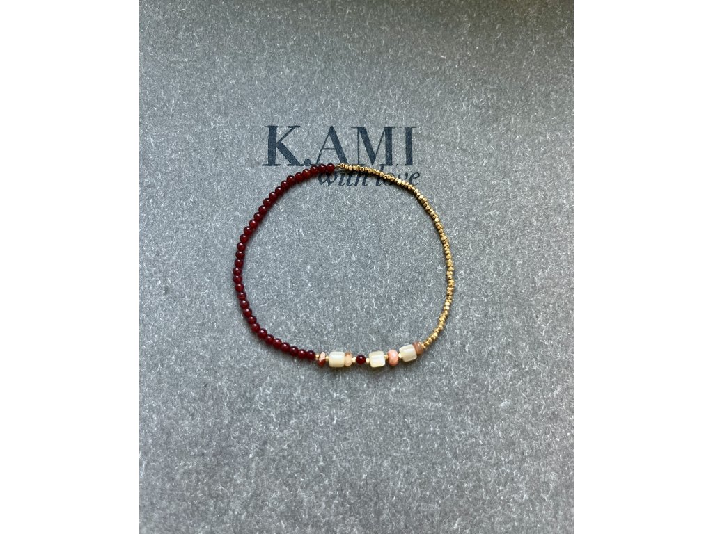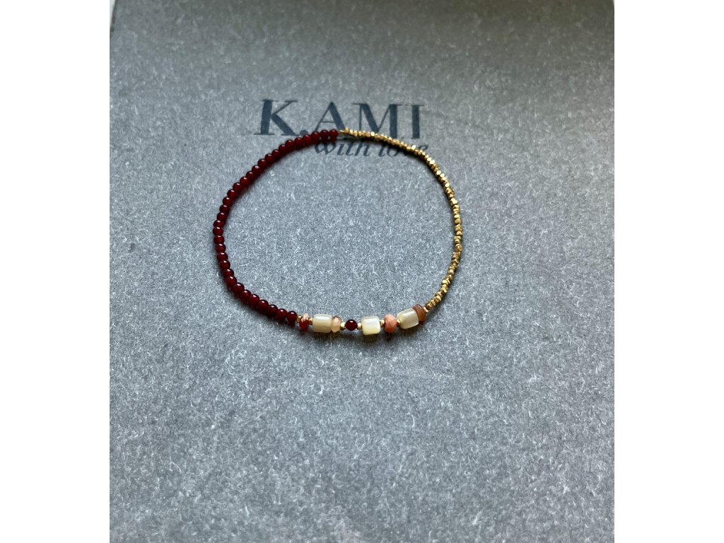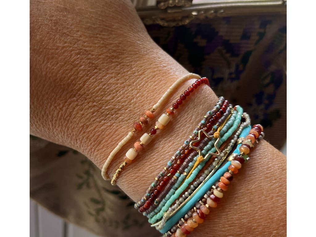 Náramek ze zlacených fazet (Ag925) a karneolu s mexickými opály, pružný návlek.