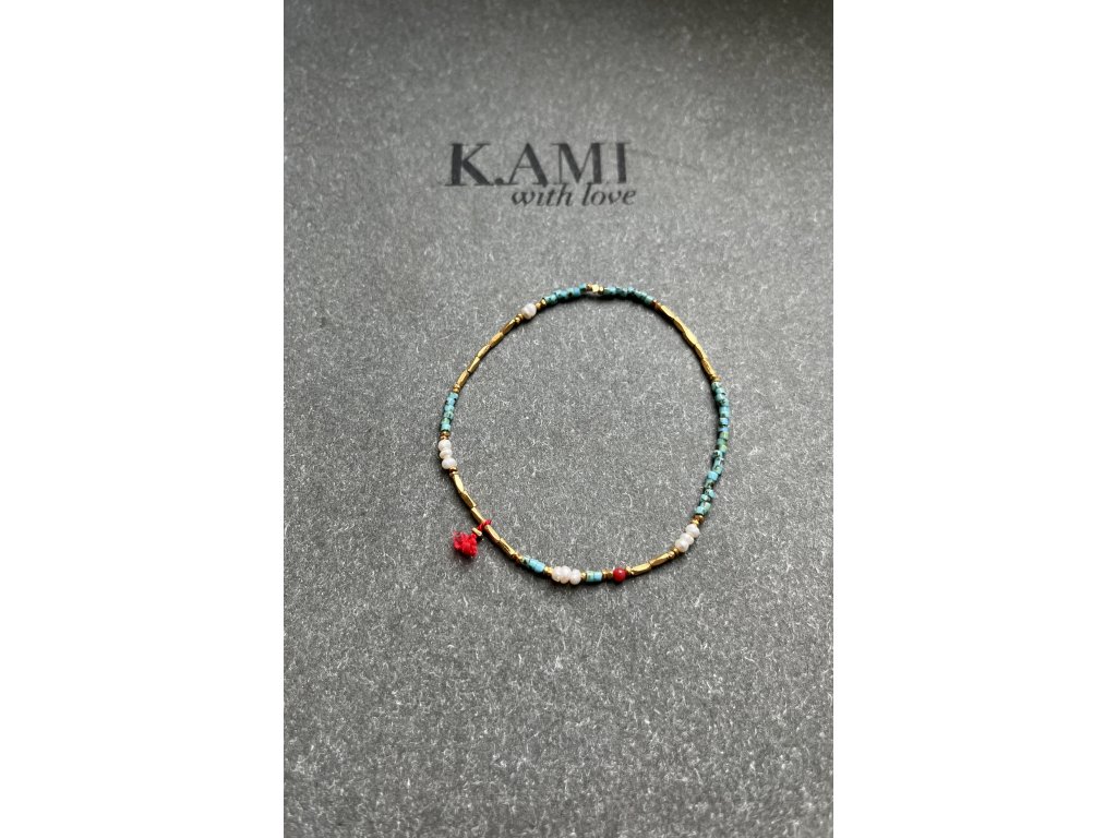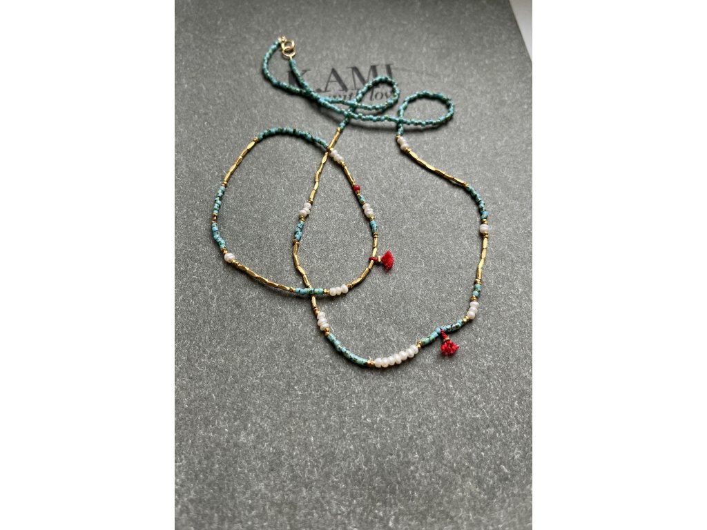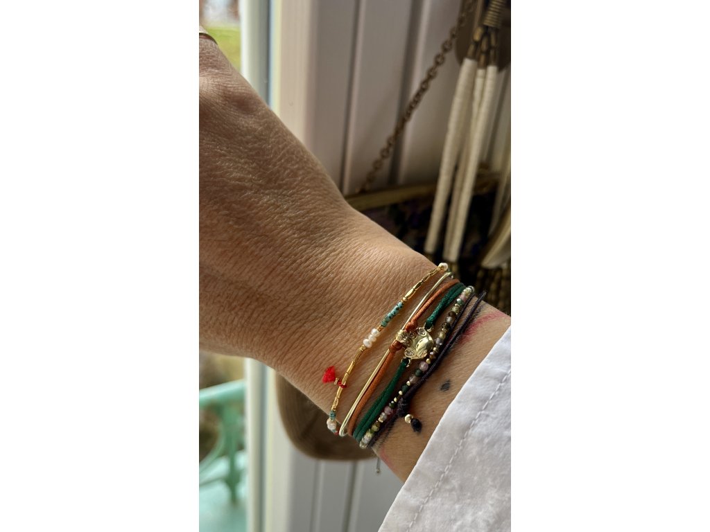 Náramek ze zlacených korálků a japonských rokajlů s perličkami Ag925, pružný návlek.