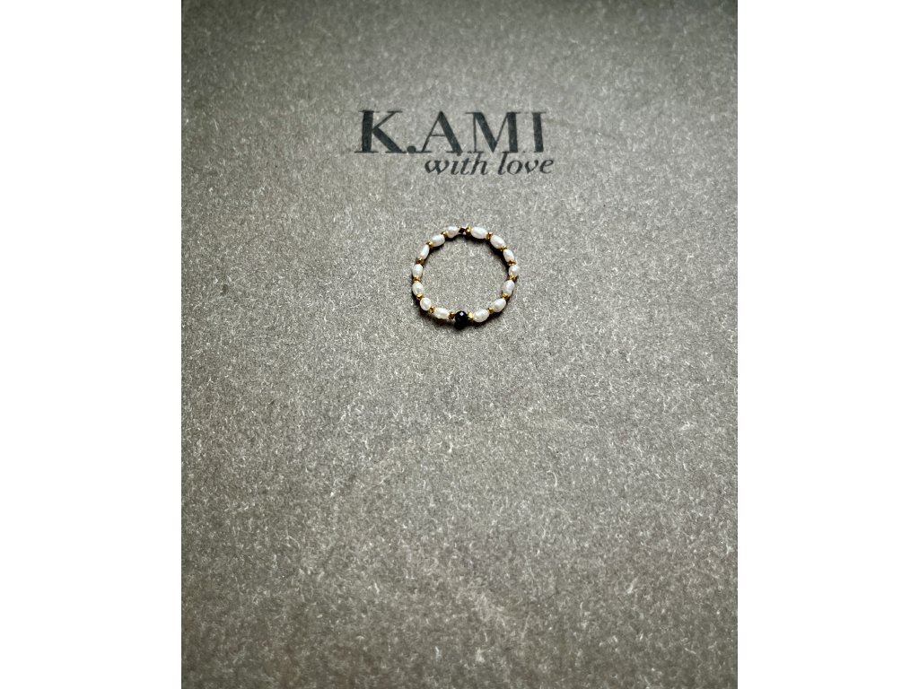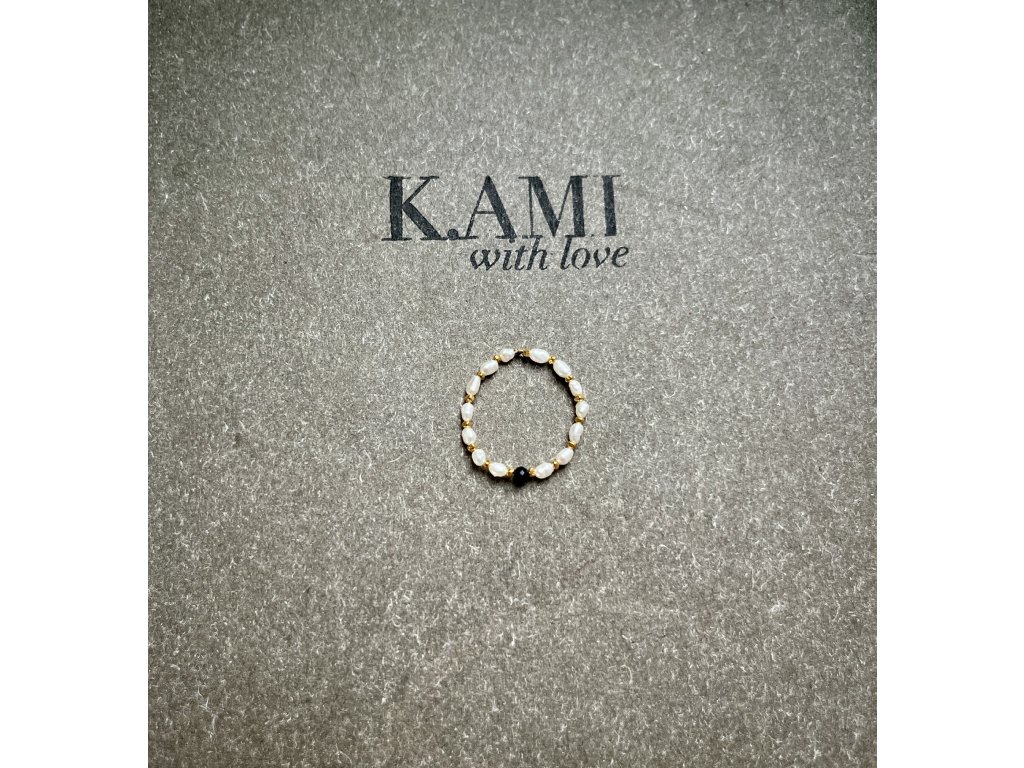 Prstýnek z říčních perliček a zlacených fazet (Ag925) se safírem, pružný návlek.
