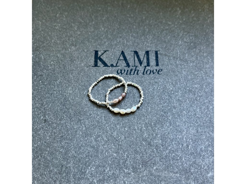 Prstýnek ze stříbrných fazet s perličkami Ag925, pružný návlek.