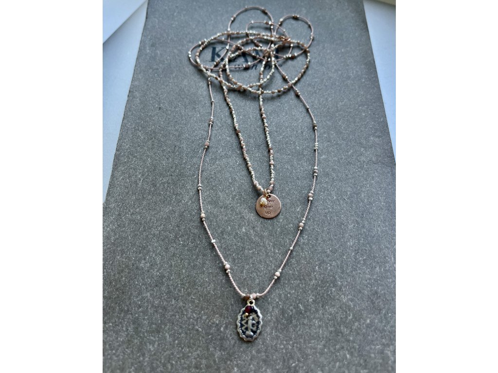 Řetízek z rodochrozitu s přívěskem Never Give Up a perličkou Ag925