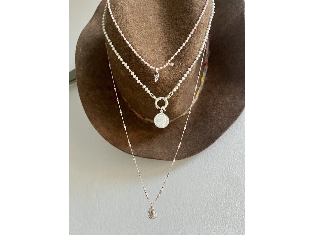 Dlouhý náhrdelník z růžového opálu s andělíčkem Ag925