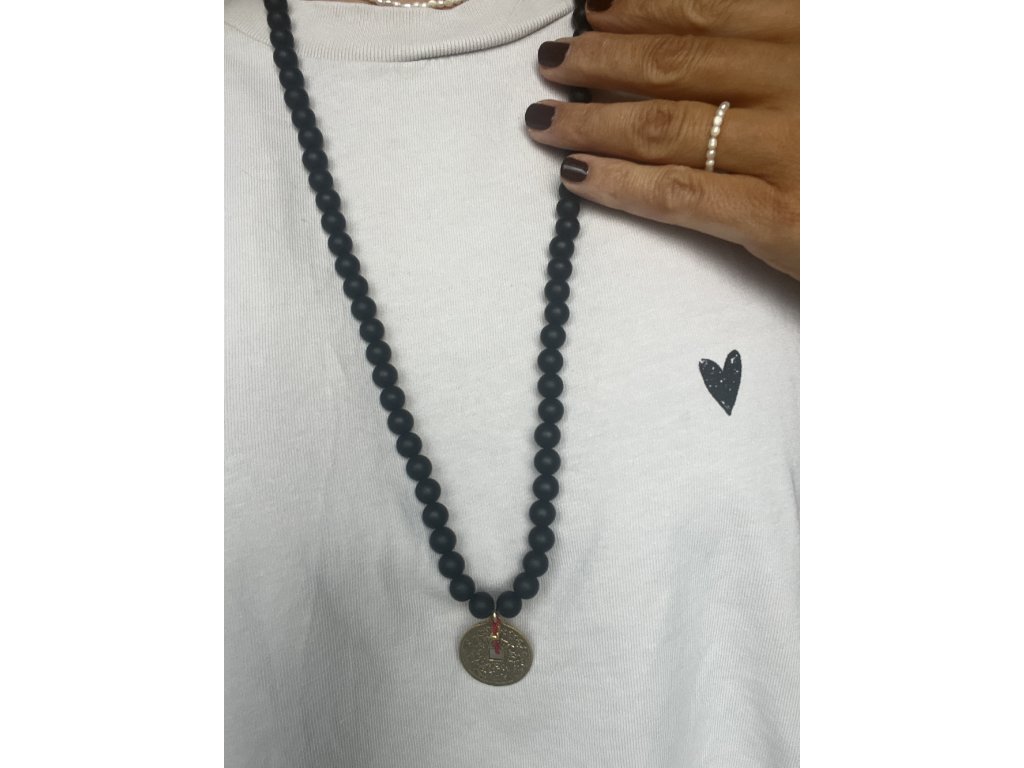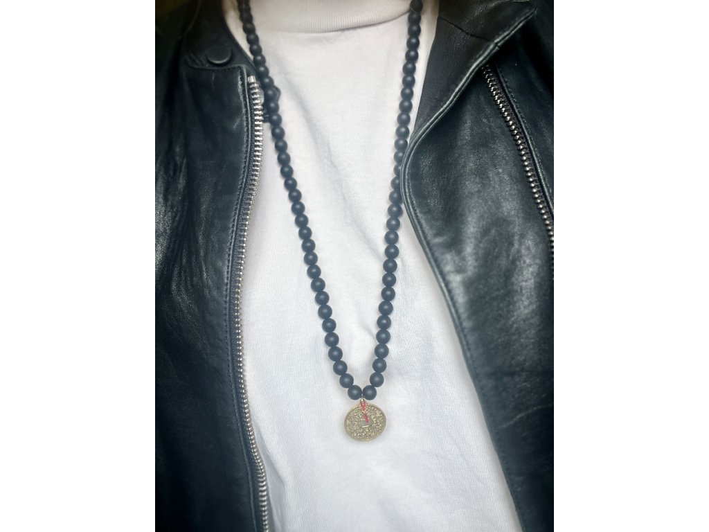 Náhrdelník z matného černého onyxu s medailonem Ag925