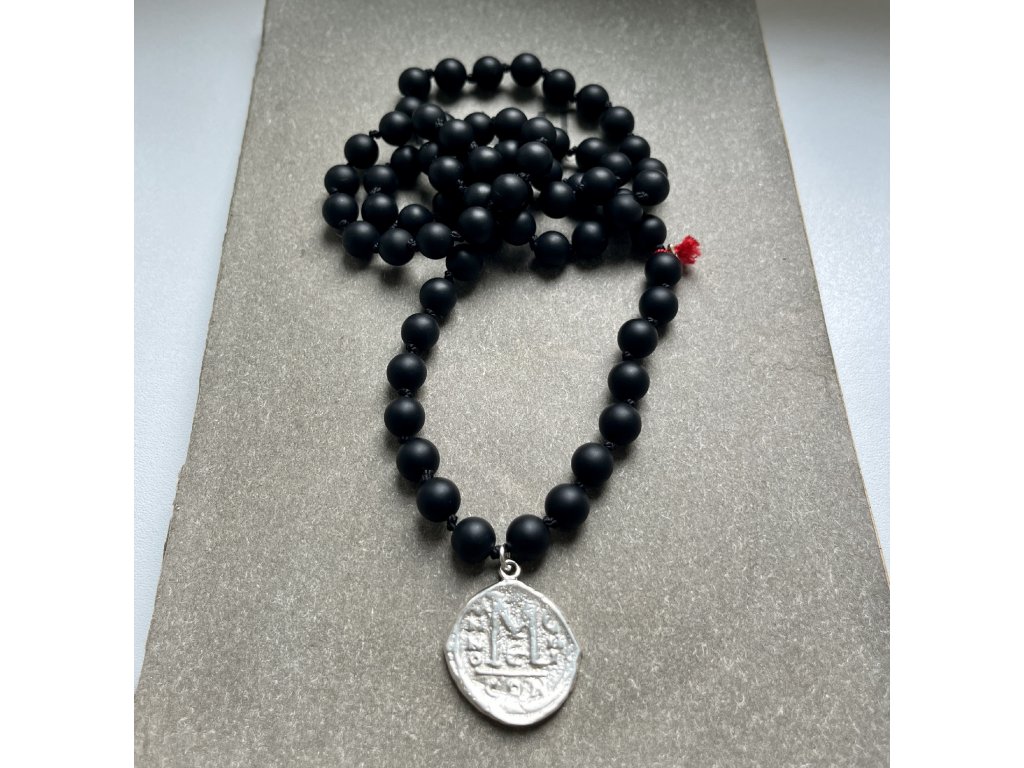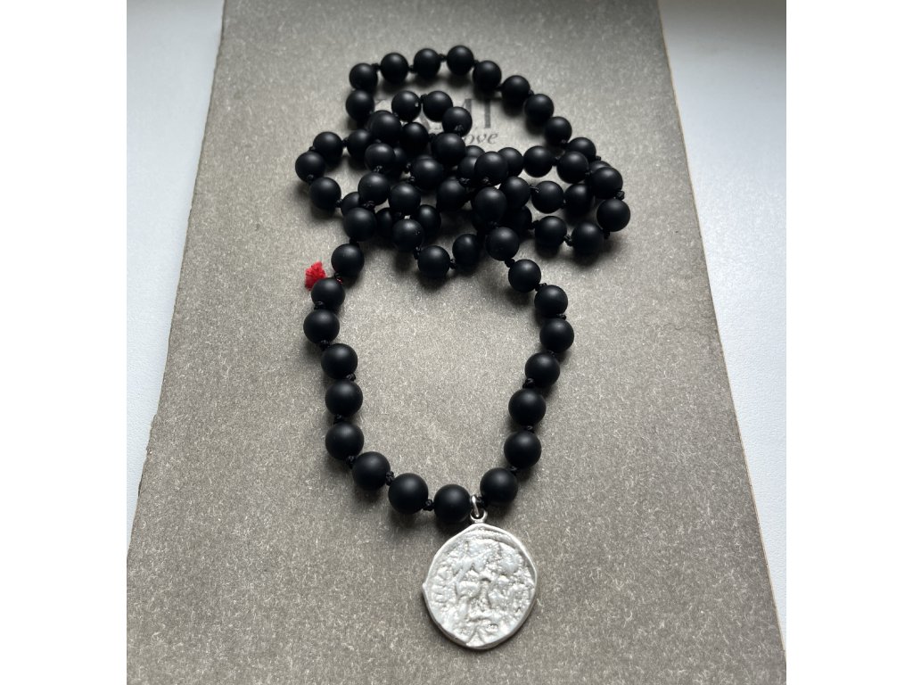 Náhrdelník z matného černého onyxu se stříbrným medailonem Ag925