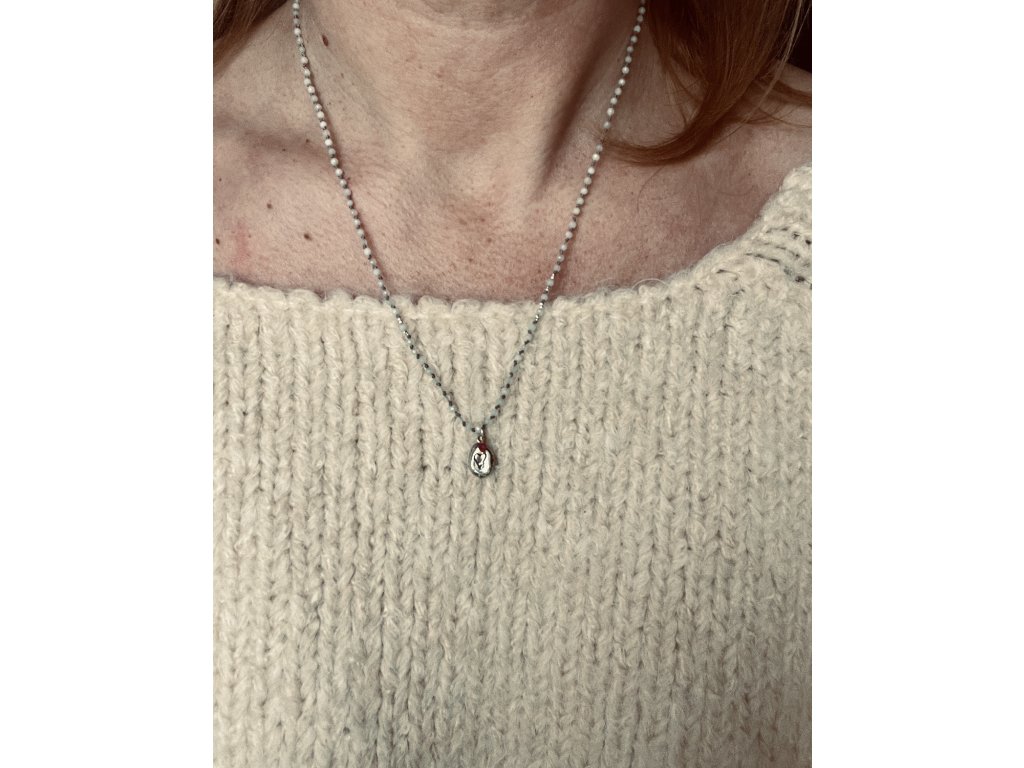 Ručně dělaný náhrdelník z matného černého onyxu se stříbrným medailonem (Ag925) a střapečkem z hedvábné šňůrky, návlek přes hlavu. Obvod náhrdelníku 71 cm. Unisex. Vhodný také...