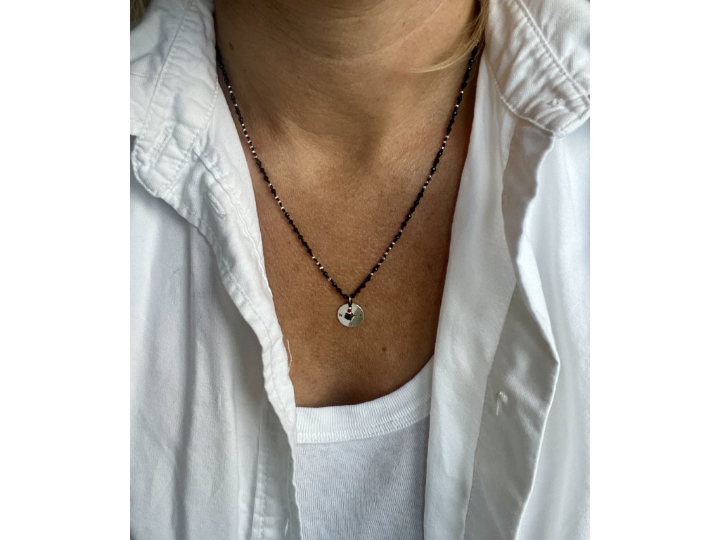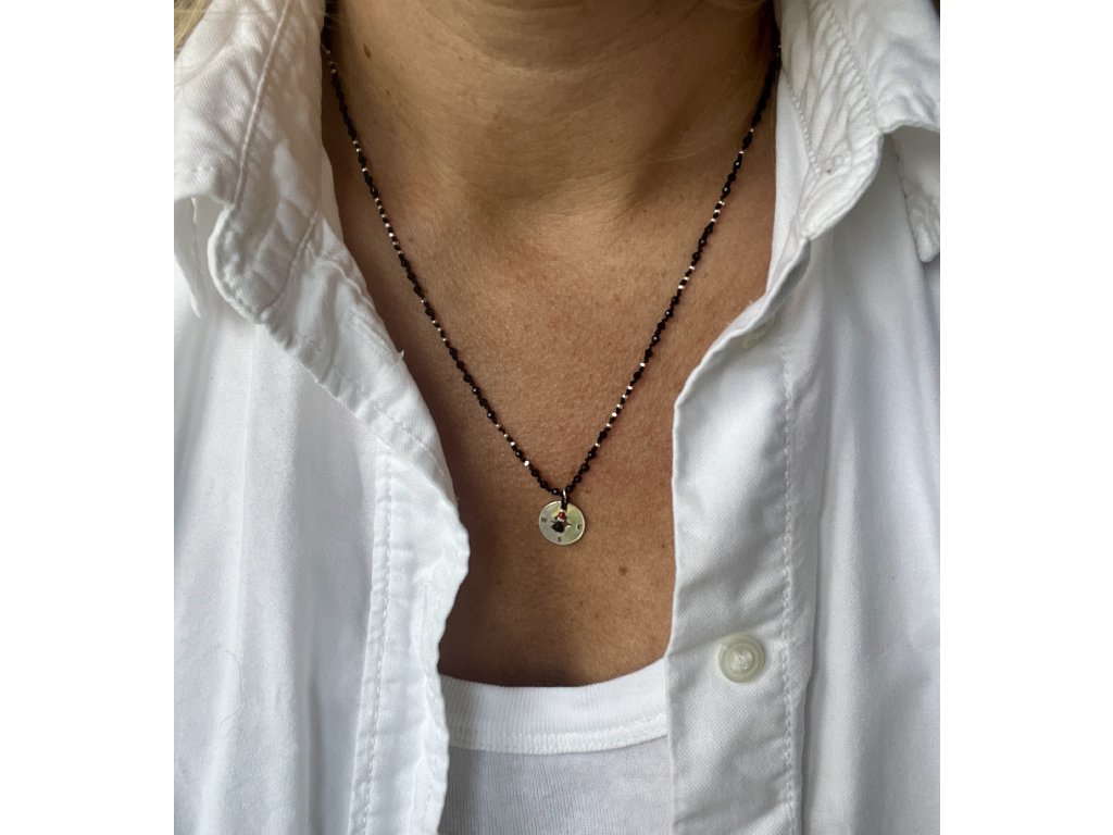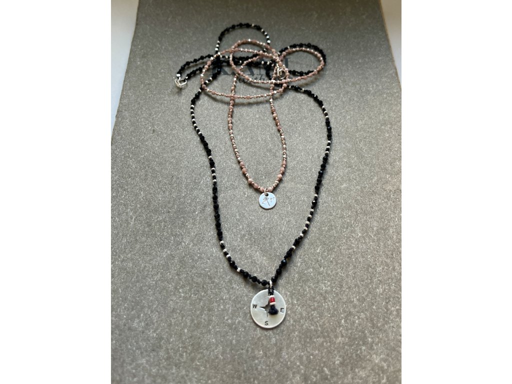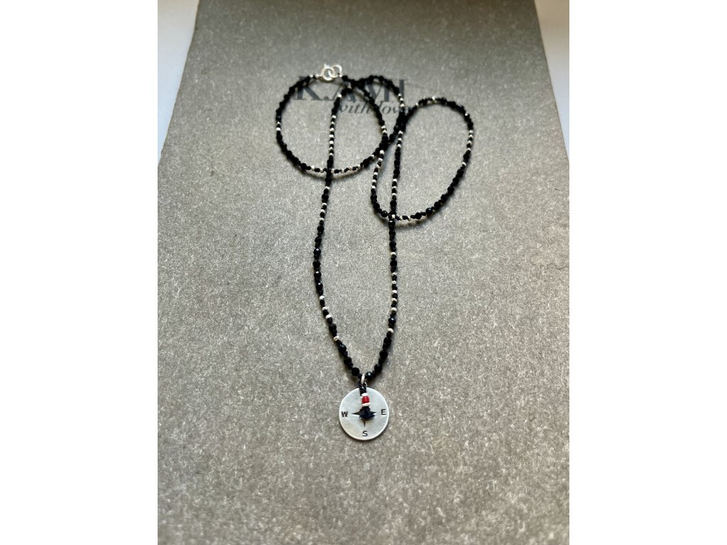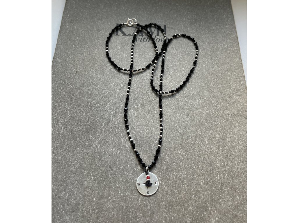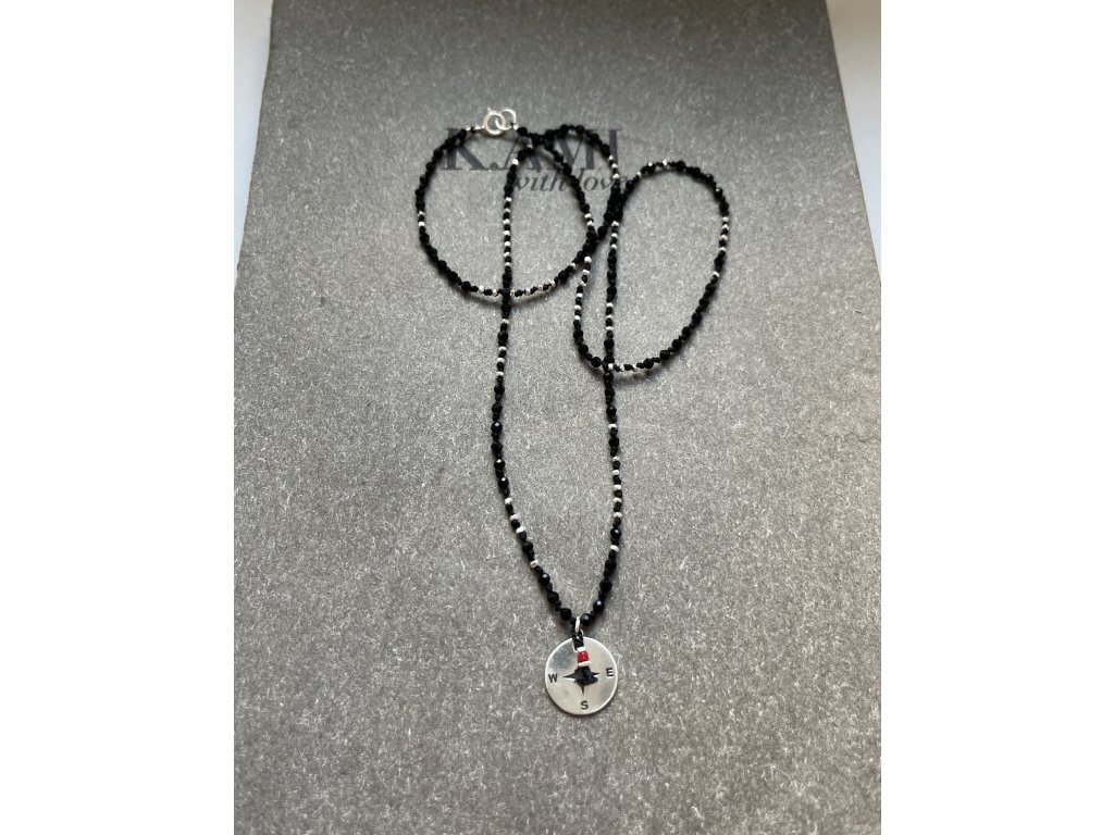 Řetízek z černého turmalínu se stříbrným kompasem Ag925
