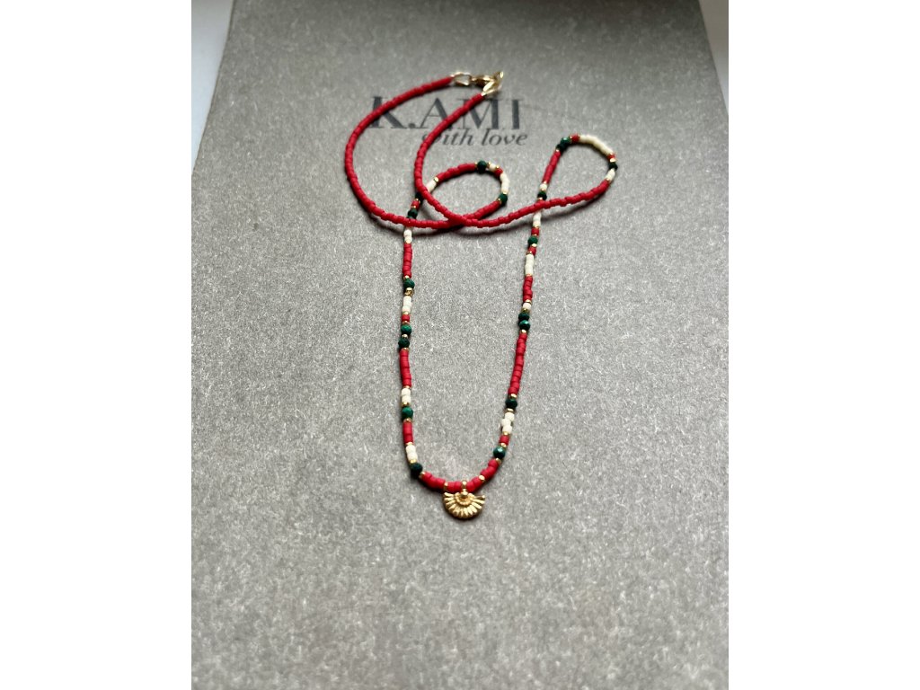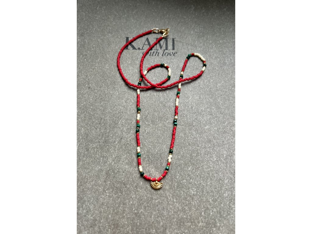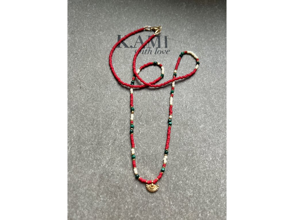 Řetízek z japonských rokajlů s malachity a vějířkem Ag925