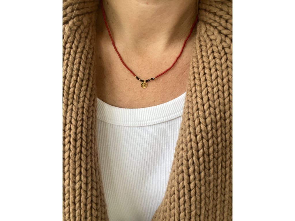 Ručně dělaný Boho řetízek z japonských rokajlů a zlacených fazet se zdobným zapínáním (Ag925) a zlaceným filigránským přívěskem (Ag925). Obvod řetízku cca 47 cm.