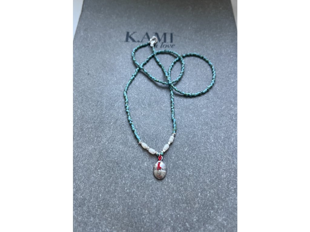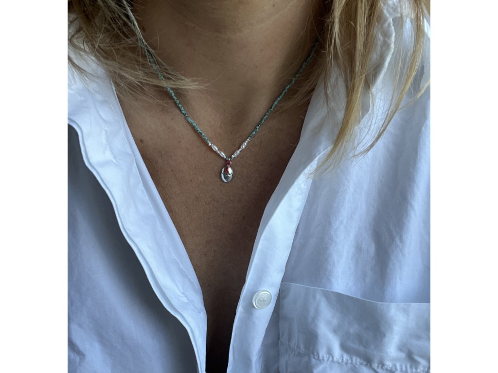 Řetízek z japonských rokajlů s perličkami a stříbrným přívěskem Ag925