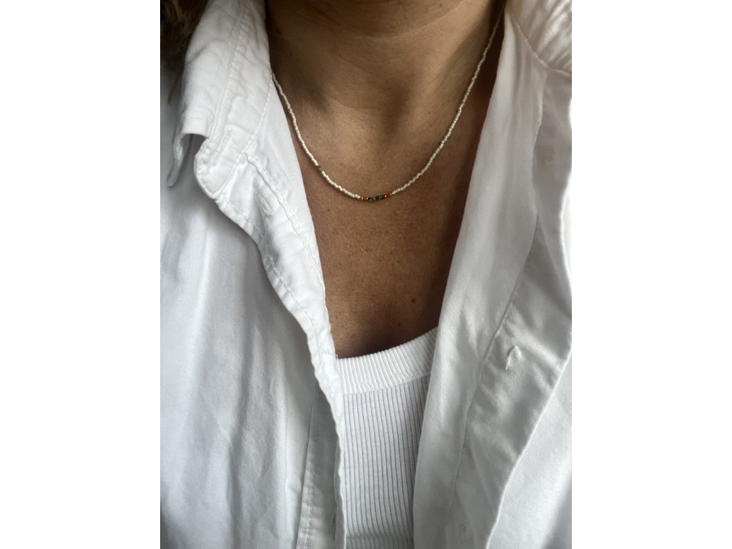 Řetízek z japonských rokajlů s tyrkysy Ag925