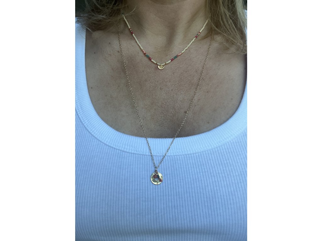 Velmi jemný krátký řetízek z japonských rokajlů se zlacenými fazetami a zlaceným vějířkem (Ag925) zlacené zapínání (Ag925).