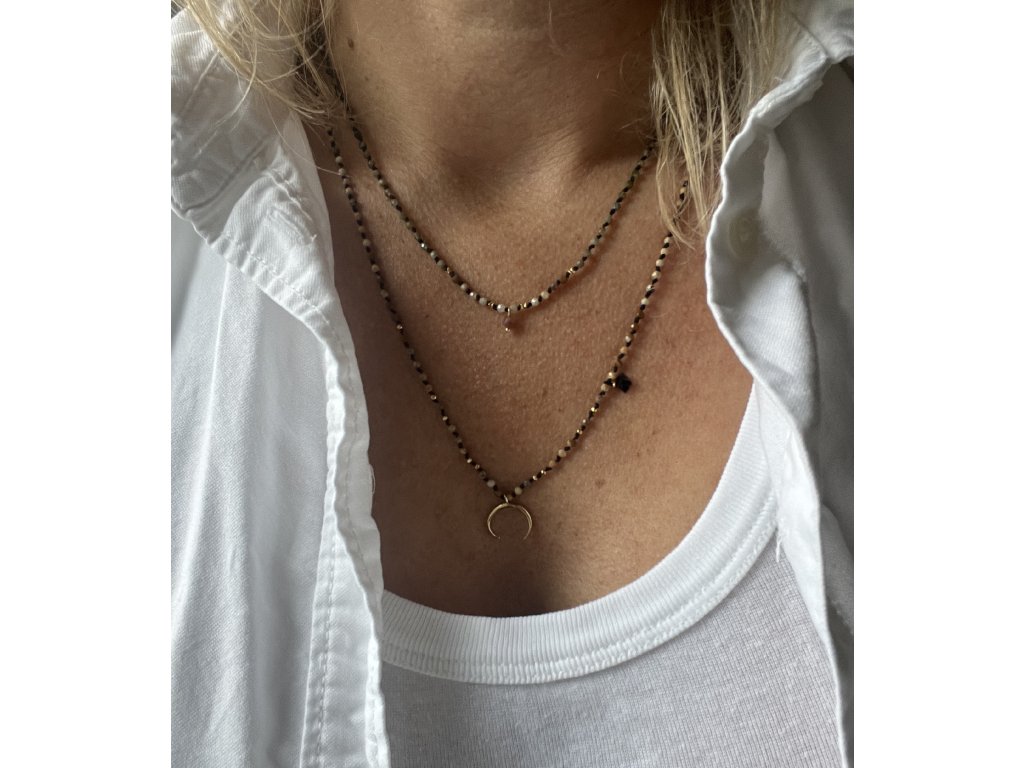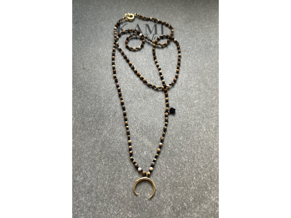 Ručně dělaný řetízek z jaspisu se zlacenými fazetami a zlaceným půlměsícem (Ag925), zlacené zapínání (Ag925).