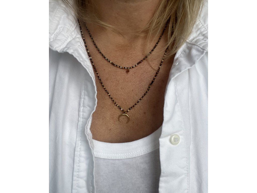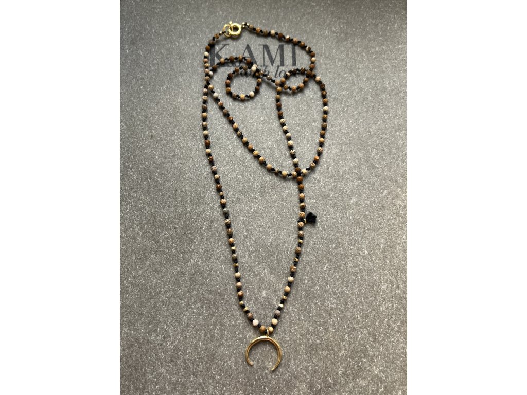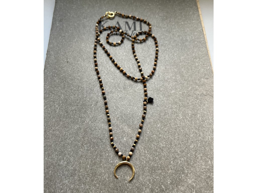 Řetízek z jaspisu se zlaceným půlměsícem Ag925