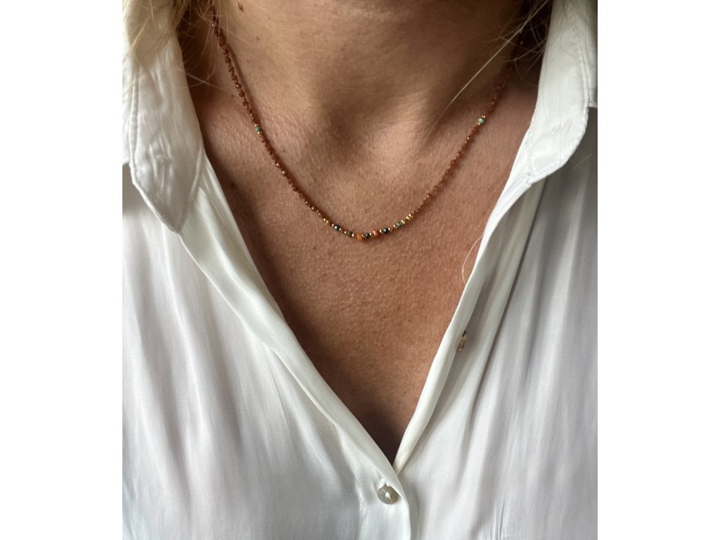 Řetízek z kamene sand stone s tyrkysy a mexickým opálem Ag925