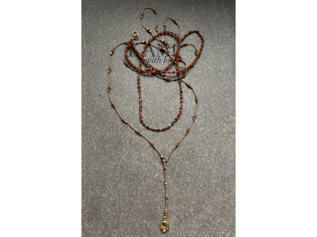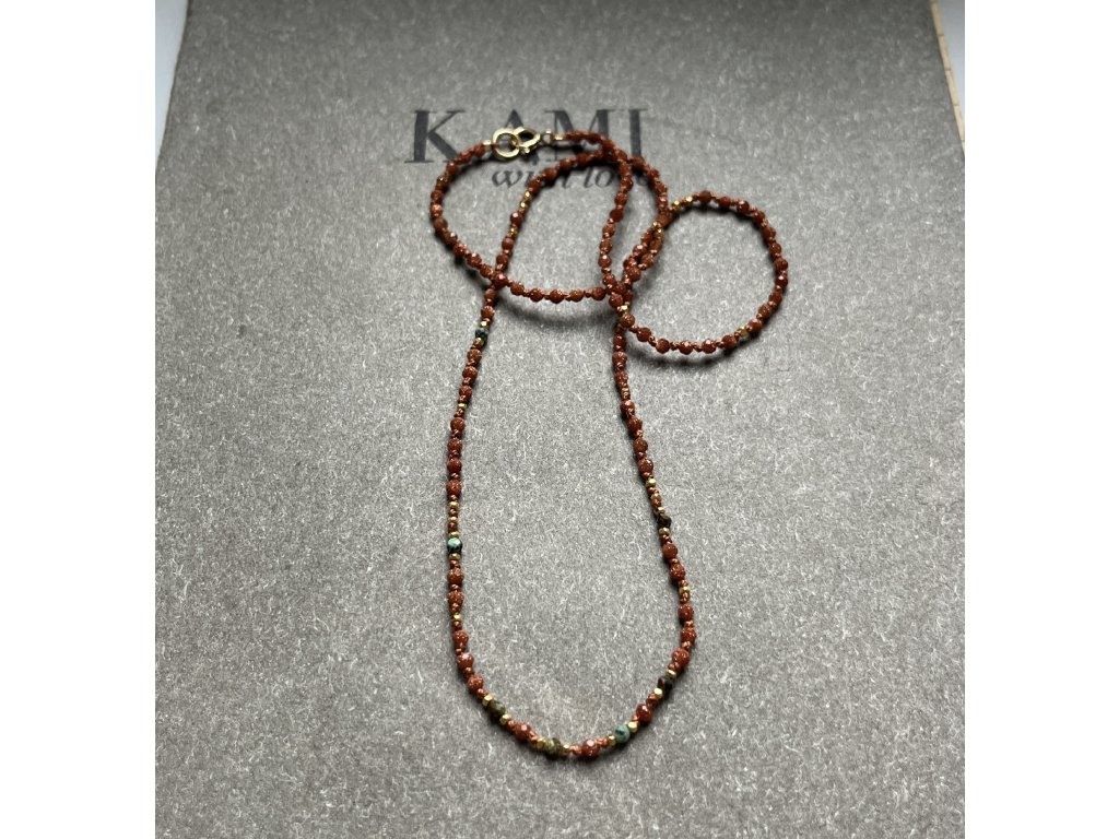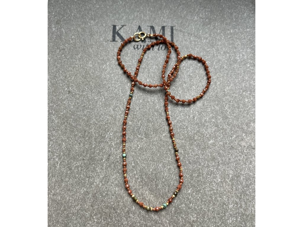 Nádherný elegantní ručně dělaný řetízek z kamene sand stone s africkými tyrkysy a zlacenými fazetami (Ag925), zlacené zapínání (Ag925).
