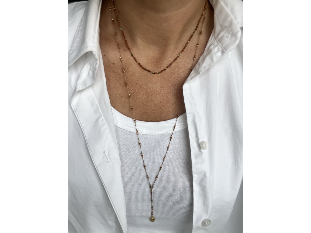 Řetízek z kamene sand stone s tyrkysy a zlacenými fazetami Ag925