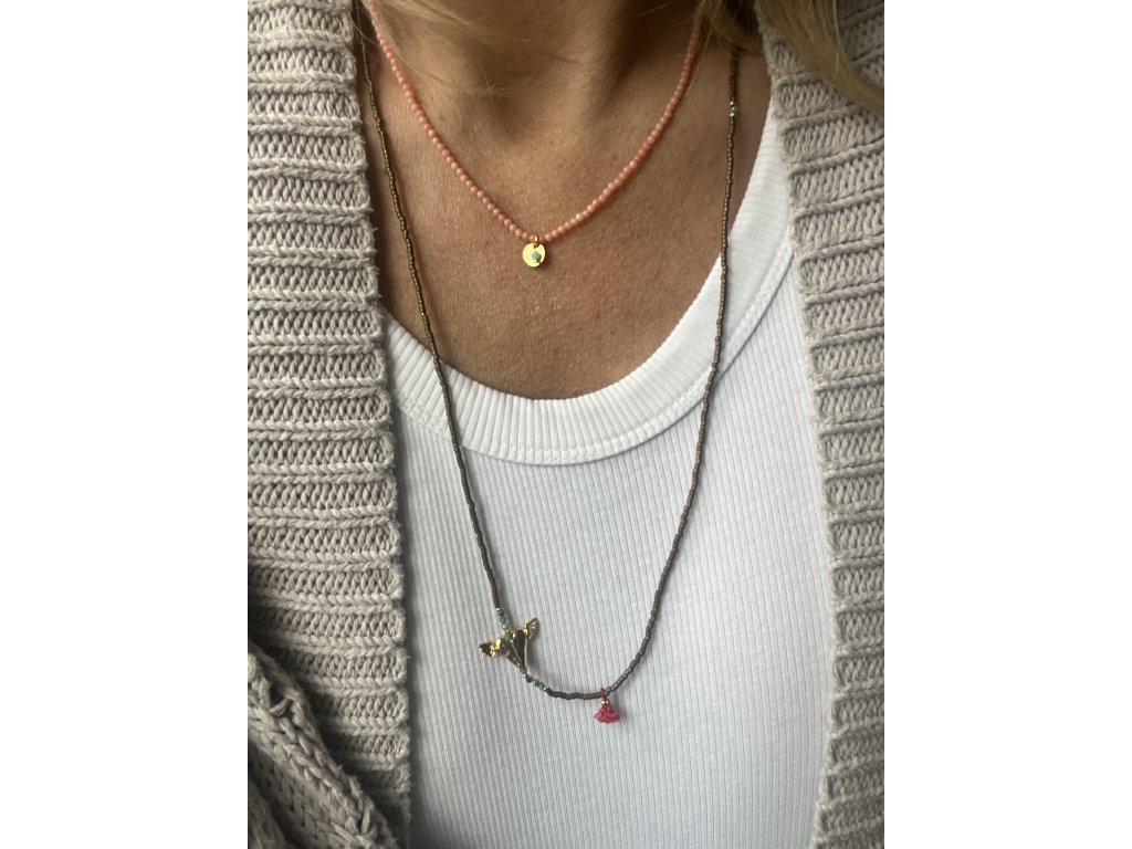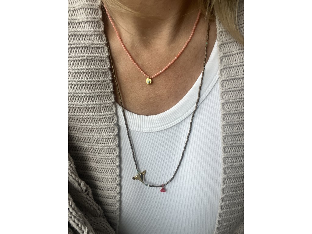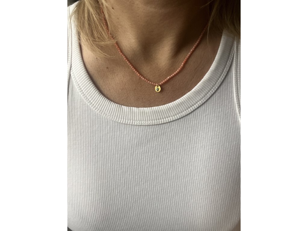 Řetízek z korálu se zlacenou pampeliškou a kamínkem Ag925