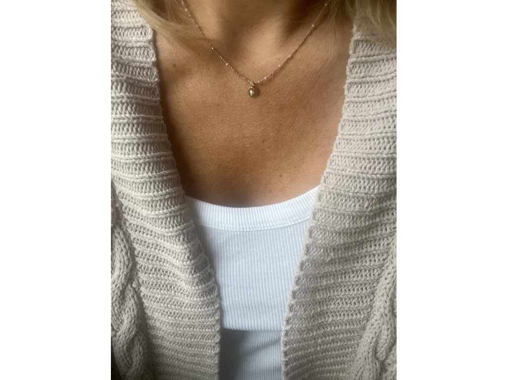 Ručně dělaný řetízek z barevných turmalínů s měsíčkem zlaceným růžovým zlatem (Ag925), zlaceným kroužkem (Ag925) a střapečkem z hedvábné šňůrky, zlacené zapínání (Ag925). ...