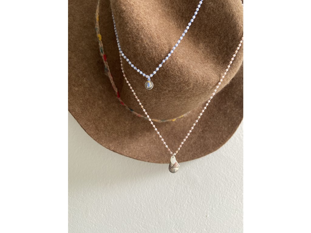 Řetízek z růžového opálu se stříbrným BELIEVE Ag925
