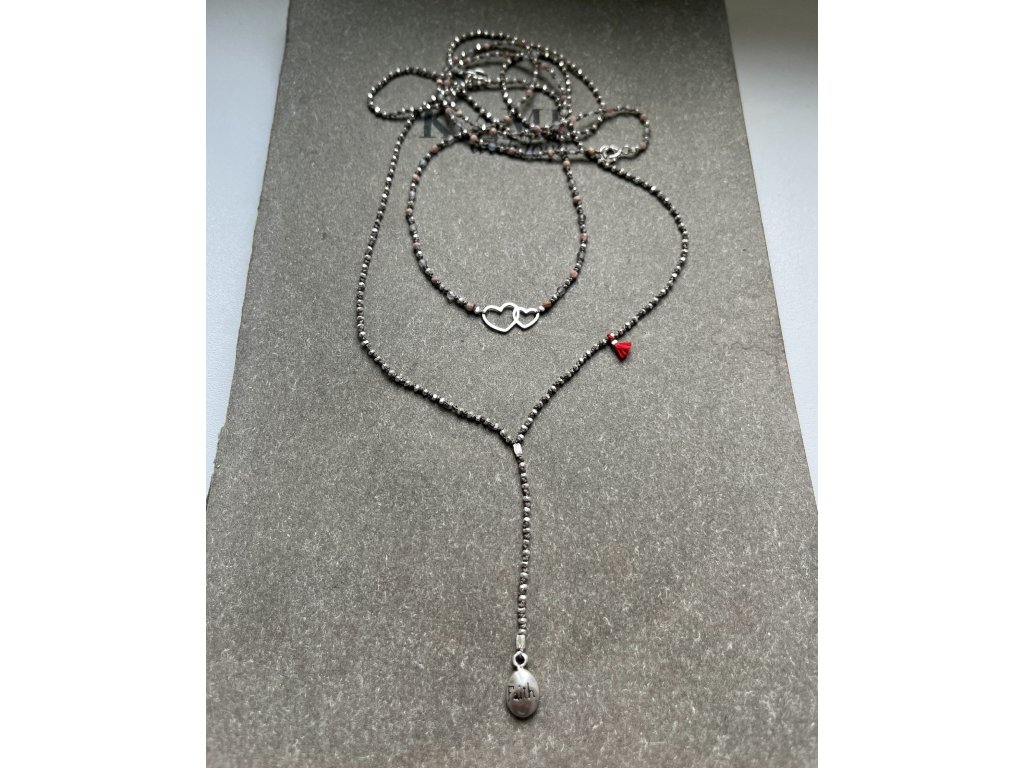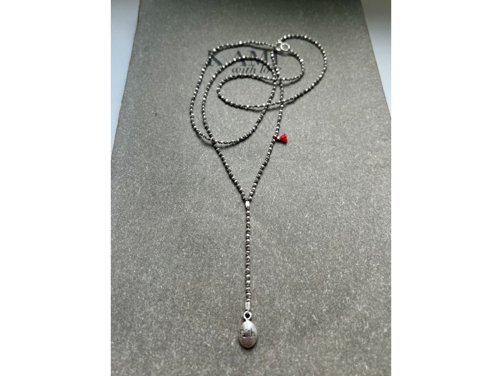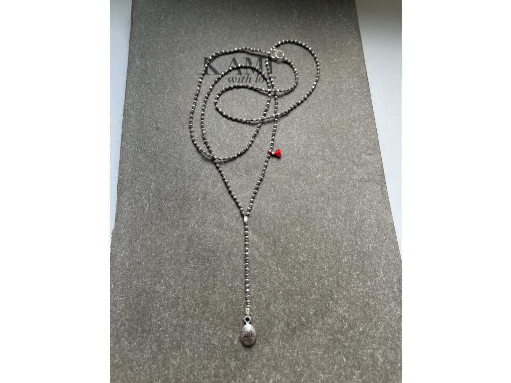 Ručně dělaný řetízek ze stříbrných fazet se stříbrným přívěskem FAITH (víra) (Ag925) se střapečkem z hedvábné šňůrky. Stříbrné zapínání (Ag925).